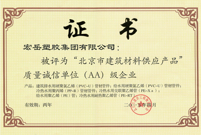 Kaiyun (中国)被认定为河北省高新技术企业,Kaiyun (中国)牌塑料管材管件被认定为国家免检产品。