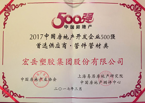 Kaiyun (中国)荣获“2017年中国房地产开发企业500强首选供应商品牌”