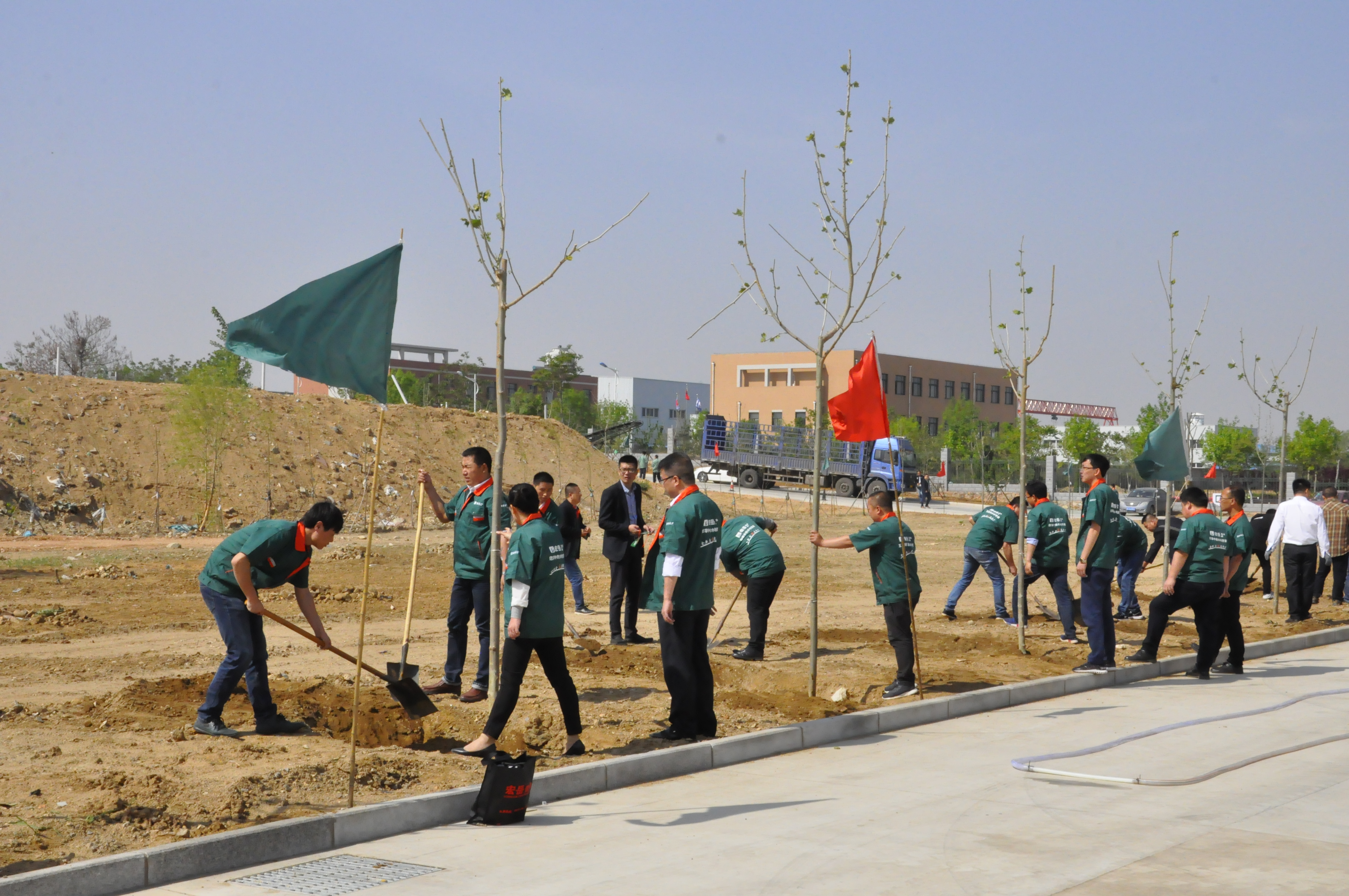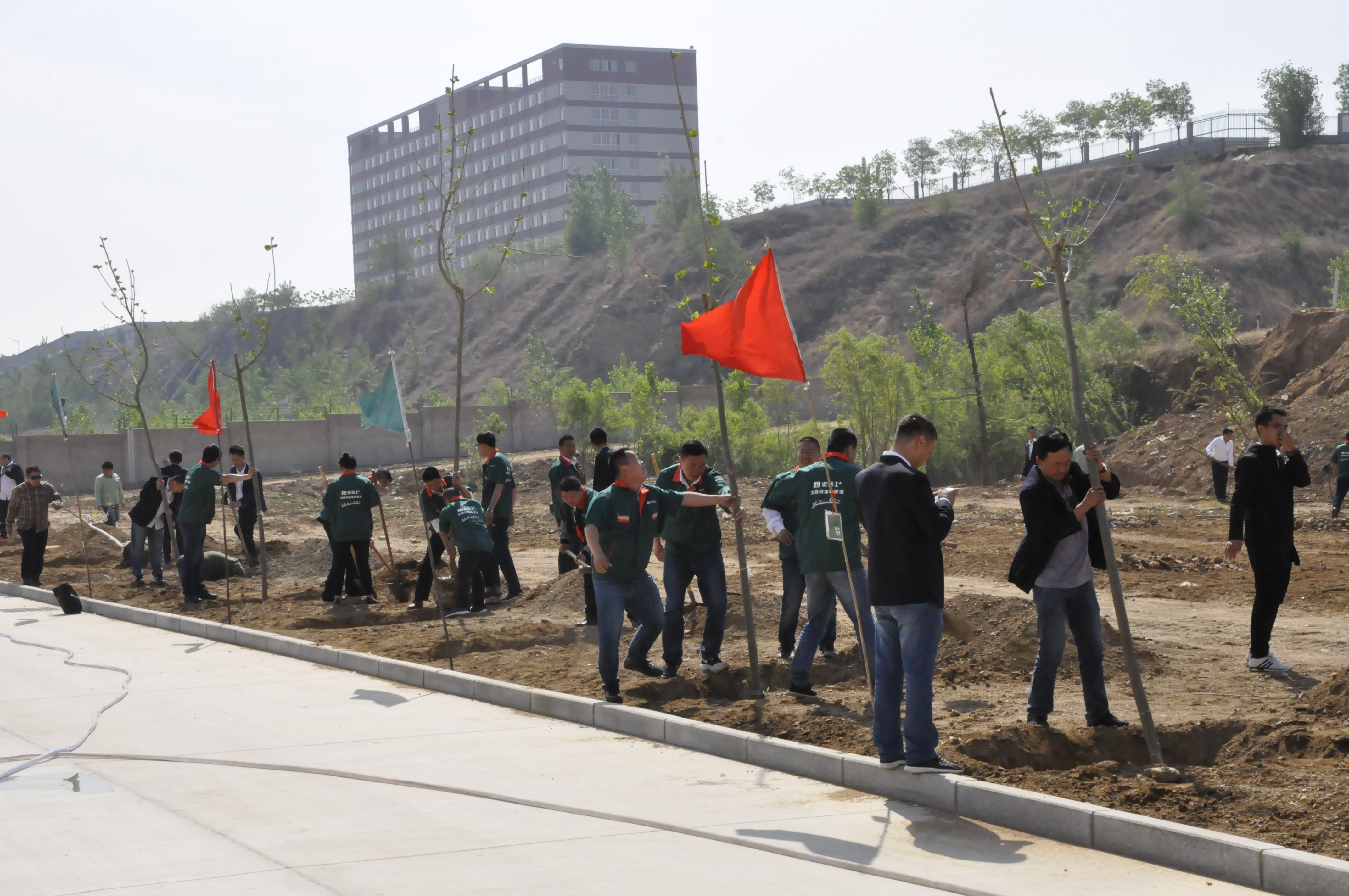 5月4日,Kaiyun (中国)集团组织职工在集团院内开展“植下希望,让梦想发芽”主题植树活动。植树活动前由集团行政马总详细地向大家讲解植树要领和技巧,在集团营销总监崔总的带领下,个个争先恐后,干劲热火朝天,有的挖土坑、有的安放树苗、有的填土夯实、有的提水浇灌,一个个多彩的身影在阳光下忙碌着,互相协作,交织成一幅幅生动的画面。经过一番热火朝天的劳动,一棵棵新树苗在明媚的春光里迎风挺立,把院内装点得更加生机盎然。